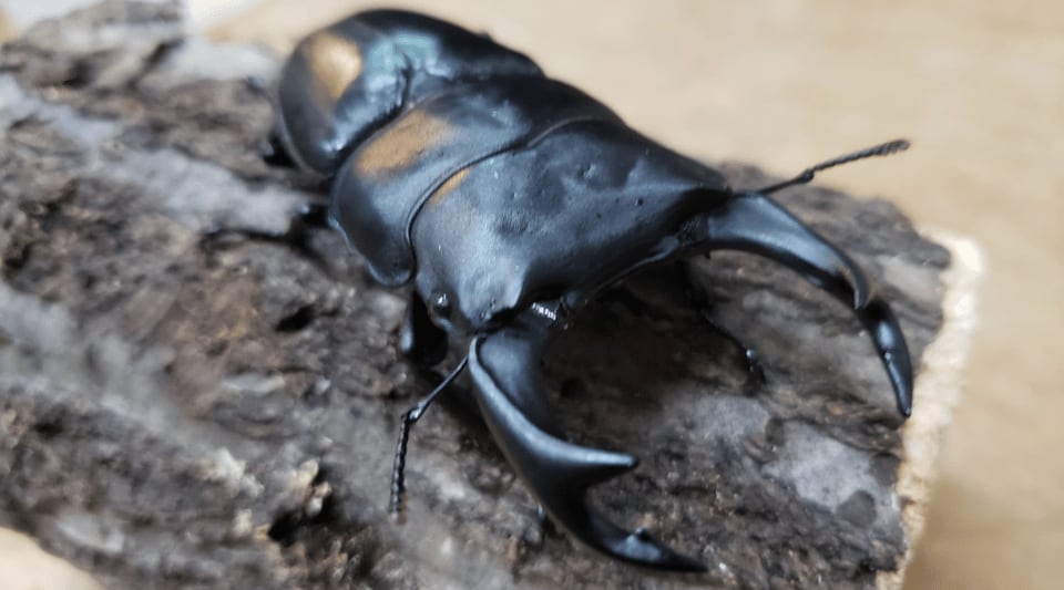 コクワガタ 群馬産ワイルド オス:40mm 採集:2025年7月 輝心堂の群馬拠点にあるきのこ園の敷地内で採集しました。 *写真は同個体です