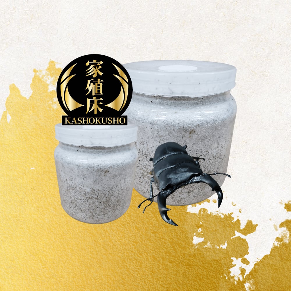 輝心堂が手がけてきたクワガタ専用菌糸ブランド「家殖床(かしょくしょう)」シリーズの最高級品「家殖床金(かしょくしょうゴールド)」の800ccサイズの菌糸瓶です。 1回目の菌糸瓶投入やメスの育成におすすめです。 新品ものの菌糸ブロック(きのこ菌床) に安全性の高い添加剤を加え、1つ1つ手詰めで仕上げております。やや硬めに仕上げているため劣化しにくく、3ヶ月を目安に2~5ヶ月利用できます。 クール便で発送希望の方は「クール便対応(480円)」も併せてご購入お願いします。