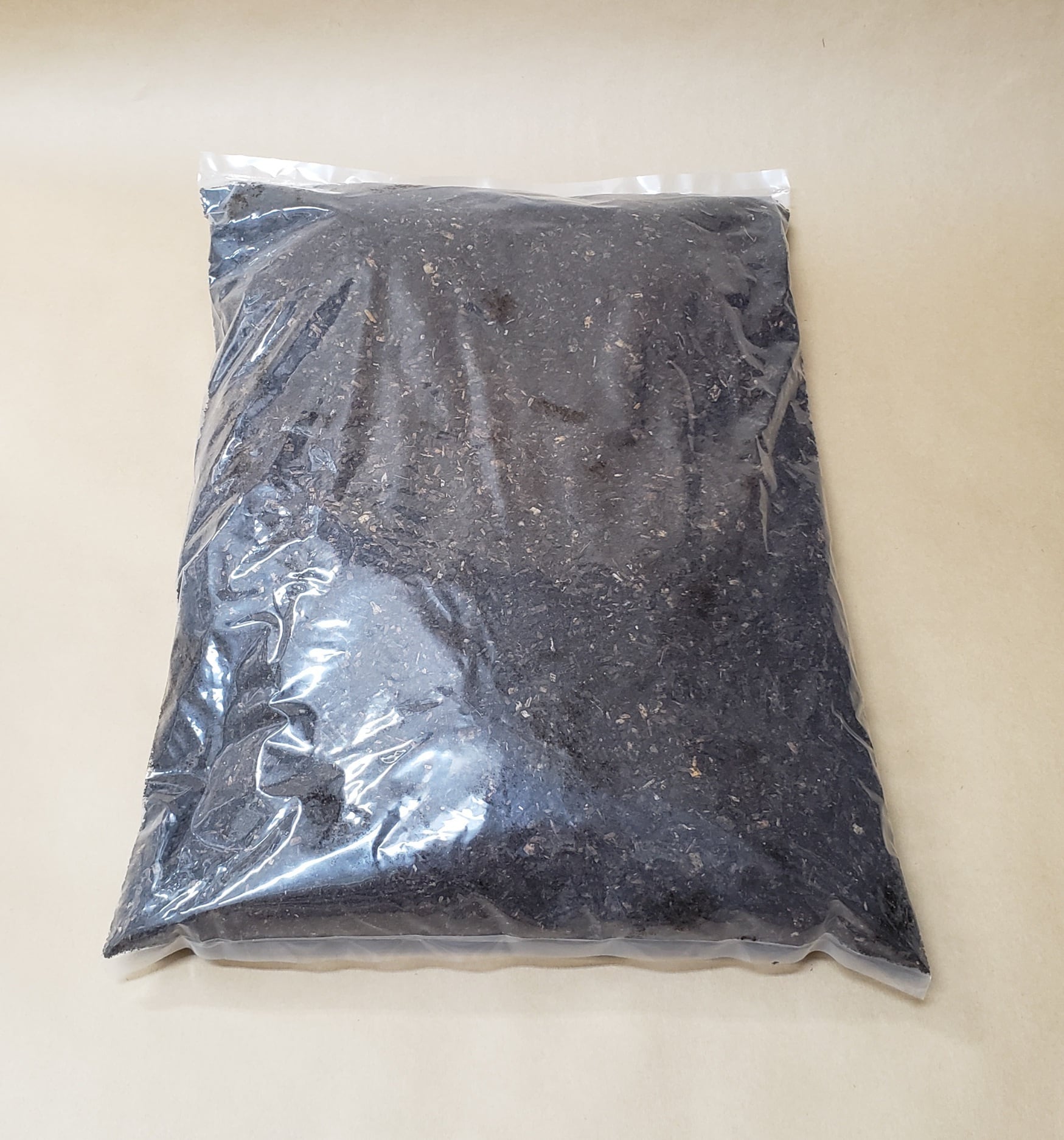 完成した堆肥マットに粉砕をかけていますので細かい状態ですが、独自チョイスした残渣には、マットの状態向上に必要な卵の殻が含まれておりますのでご注意ください。